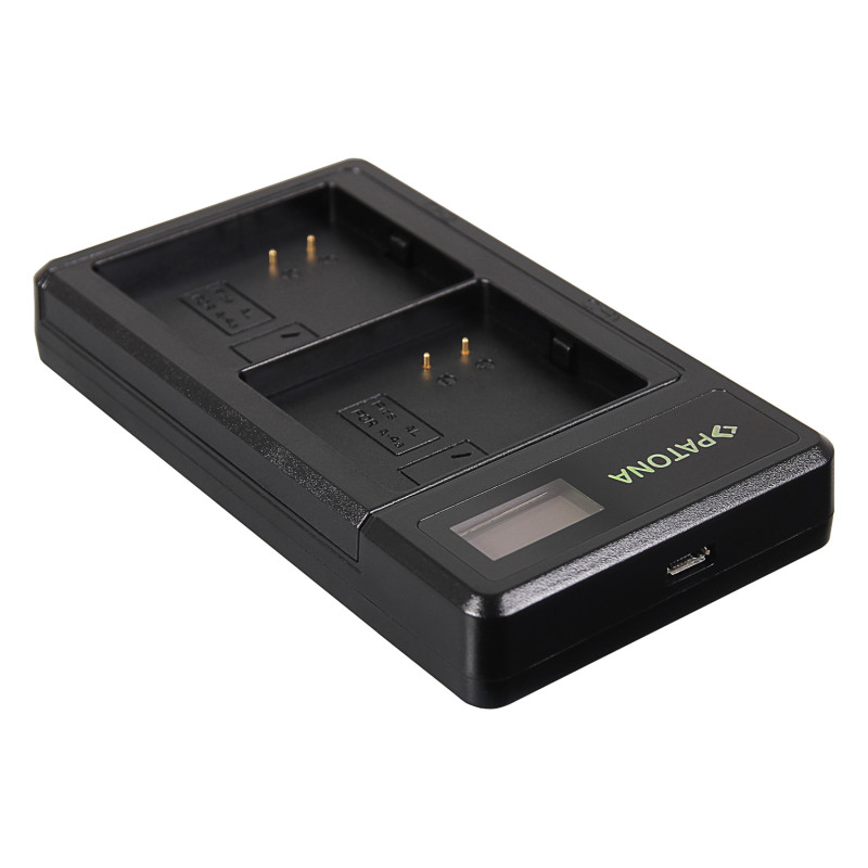 Alimentatore Patona estremamente pratico per caricare le batterie per fotocamera / videocamere tramite il connettore MicroUSB. La stazione di ricarica può essere collegata tramite cavo USB a qualsiasi alimentatore di cellulare o tablet con il connettore MicroUSB. Contiene un indicatore di stato a LED che indica lo stato di carica della batteria. Corrente di carica: 600 mA (una batteria) o 600 mA (due batterie). Il cavo MicroUSB è incluso!