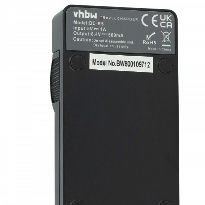 Alimentatore VHBW estremamente pratico per caricare le batterie per fotocamera / videocamere tramite il connettore MicroUSB. La stazione di ricarica può essere collegata tramite cavo USB a qualsiasi alimentatore di cellulare o tablet con il connettore MicroUSB. Contiene un indicatore di stato a LED che indica lo stato di carica della batteria. È incluso anche un cavo USB da 40 cm.