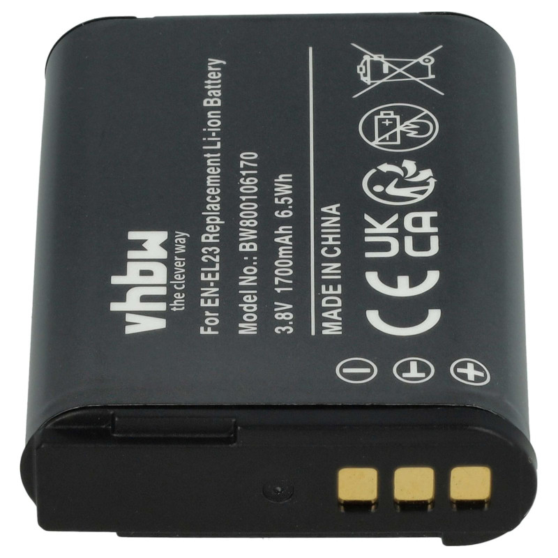 Batteria EN-EL23 per Nikon Coolpix P600 / P900 / S810, 1700 mAh