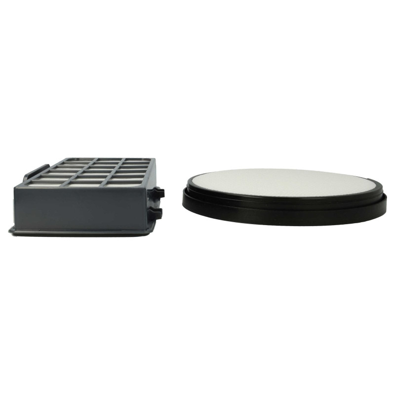 Set di filtri di ricambio per aspirapolvere Rowenta. Dimensioni del filtro pre-motore: diametro 16,9 cm, altezza 1,94 cm. Dimensioni del filtro HEPA: 18,8 cm x 9,1 cm x 3,4 cm.