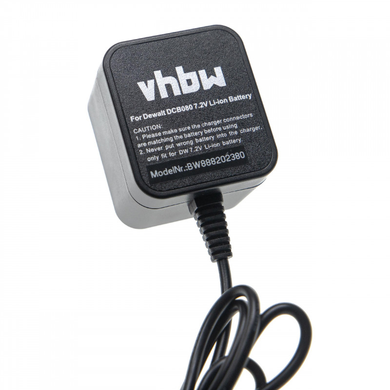 Caricabatterie per Li-Ion batterie DeWalt di voltaggio 7,2 V. Il caricabatterie è dotato di protezione da sovraccarico, protezione da sovracorrente e protezione dalla temperatura, nonché certificazione CE e RoHS.