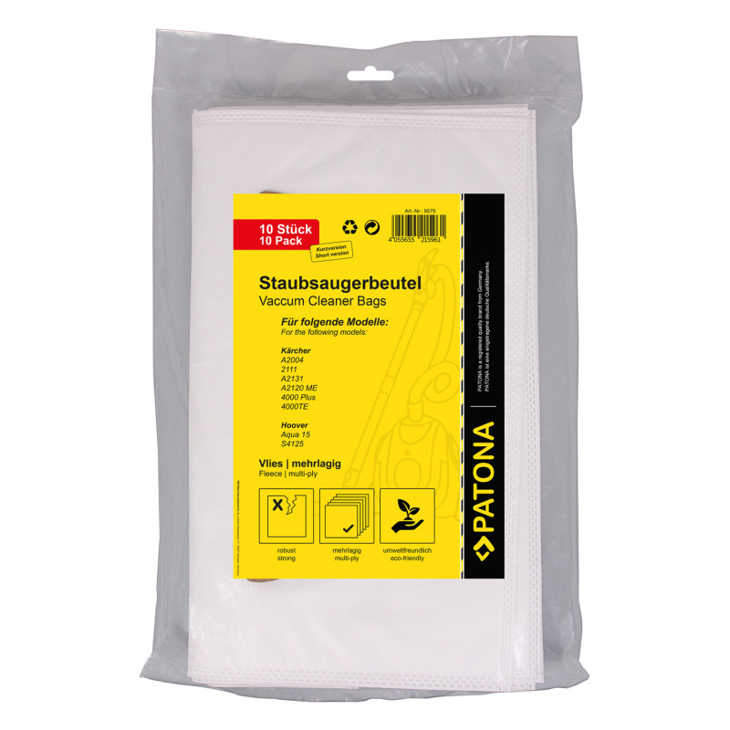 Confezione 10 pezzi sacchetti di ricambio per aspirapolvere Kärcher, che ti farà risparmiare denaro e tempo prezioso. I sacchetti sono composti di materiale micro-fibroso a cinque strati.