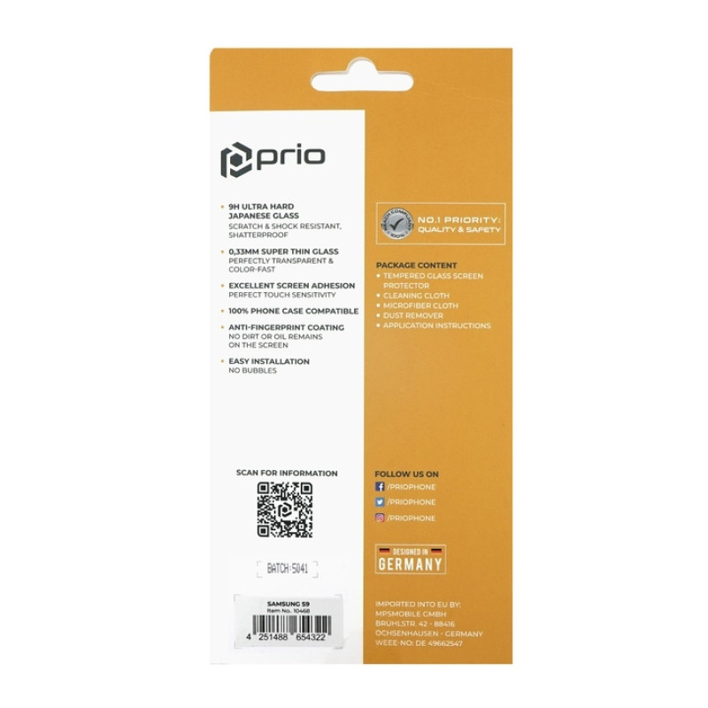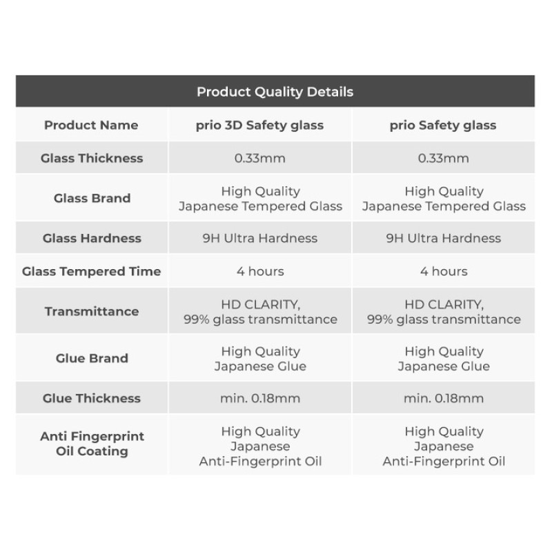 Il vetro temperato prottetivo Prio offre massima protezione dello schermo da graffi e urti. È prodotto secondo gli ultimi standard e fornisce vestibilità perfetta e installazione facile. È completamente trasparente. Assorbe bene gli urti anche quando il telefono cade.